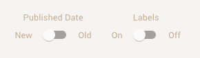 The switches will modify the display. The Published Date switch will change the chronological sort order. The Labels switch will turn the labels on (visible) or off (invisible) below the figures.